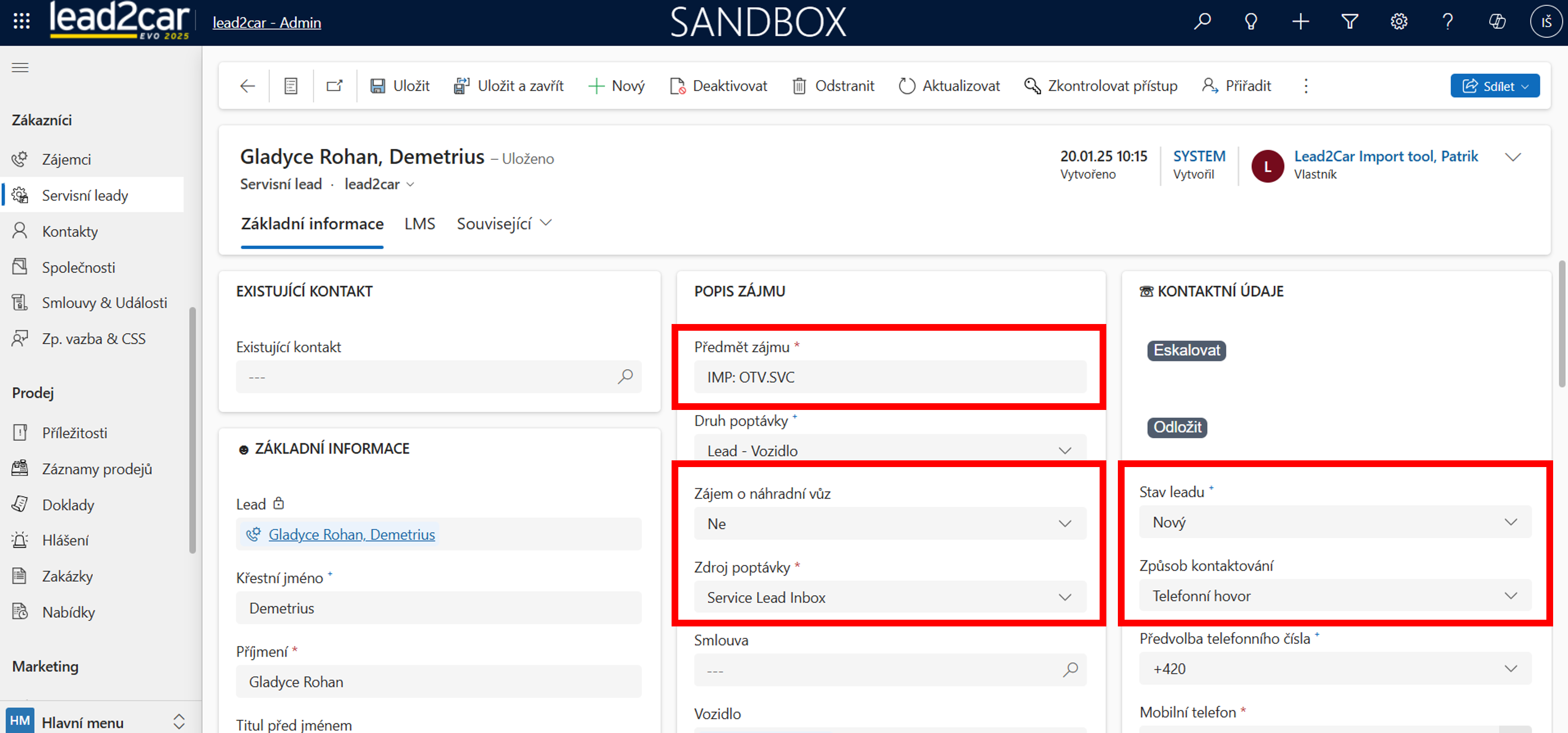 1. Zpracování servisních leadů ze Service Lead Inboxu