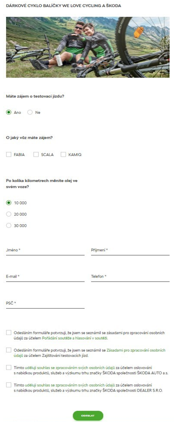 Pro účely dalšího využití leads jako je oslovování s nabídkou produktů a služeb, výzkumu trhu značky ŠKODA, je pro společnost Škoda Auto a dealerskou síť sbírán i Souhlas se zpracováním osobních údajů.
