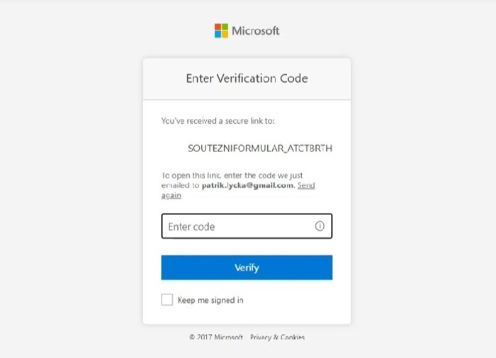 Oprávněné osoby, které byly uvedeny v zadání, obdrží e-mailem unikátní odkaz k souboru na Sharepointu, kde budou zaznamenány veškeré sebrané záznamy. Po kliknutí na odkaz bude třeba zadat uvedený e-mail, na který byl odkaz zaslán: