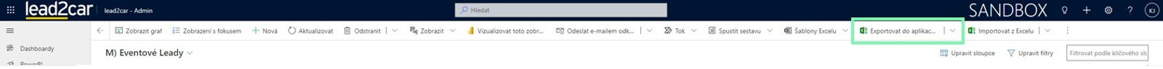 Z lead2car, stejně jako z Lead Management Systému je možné si leady exportovat do excelu. Tlačítko pro export najdeme vždy na horní liště:
