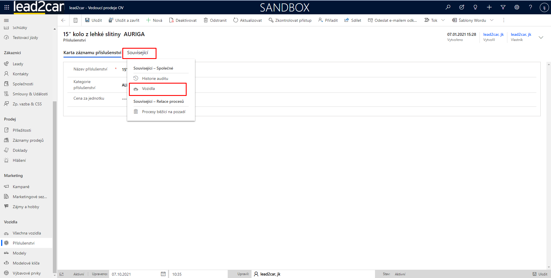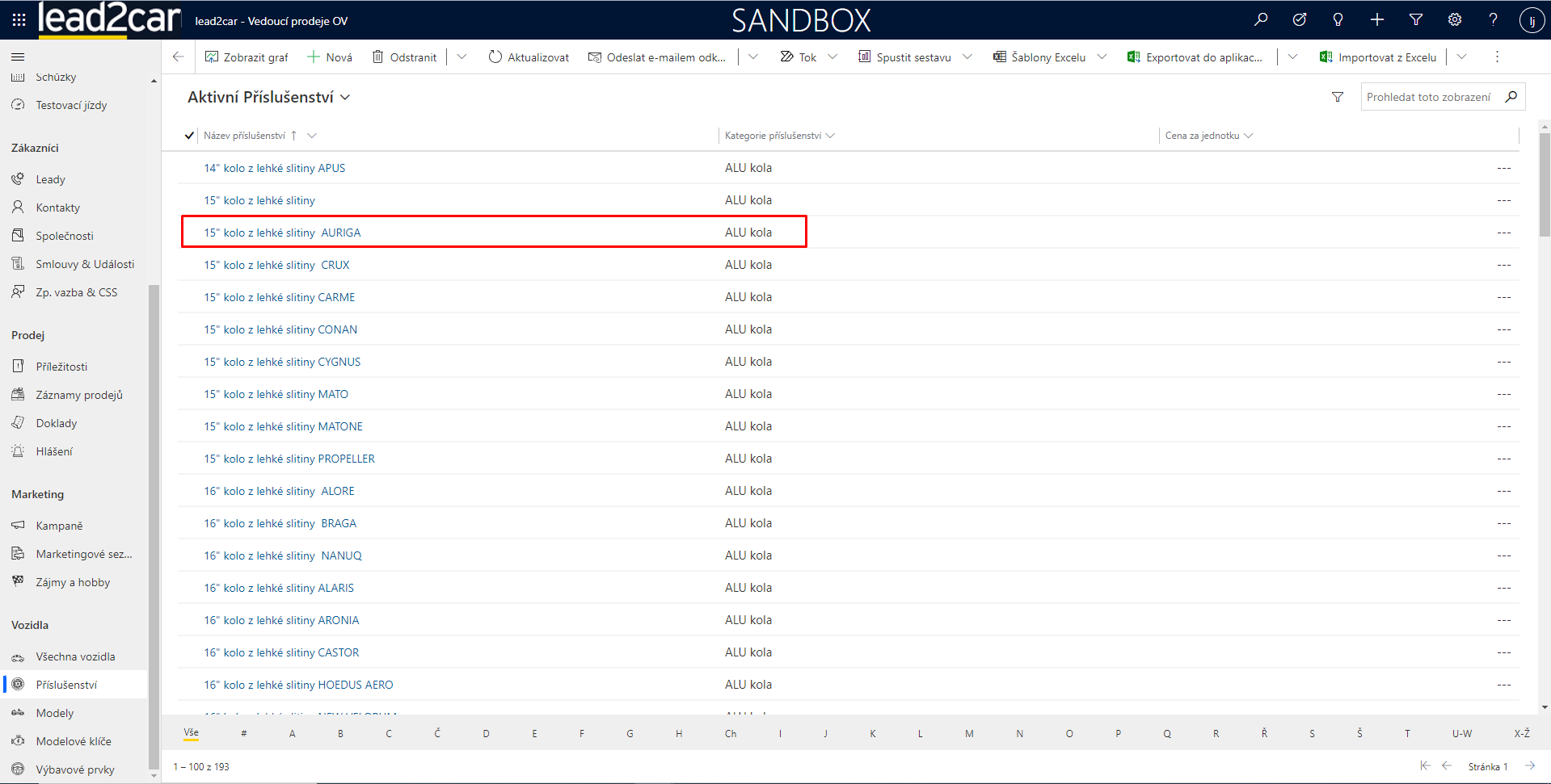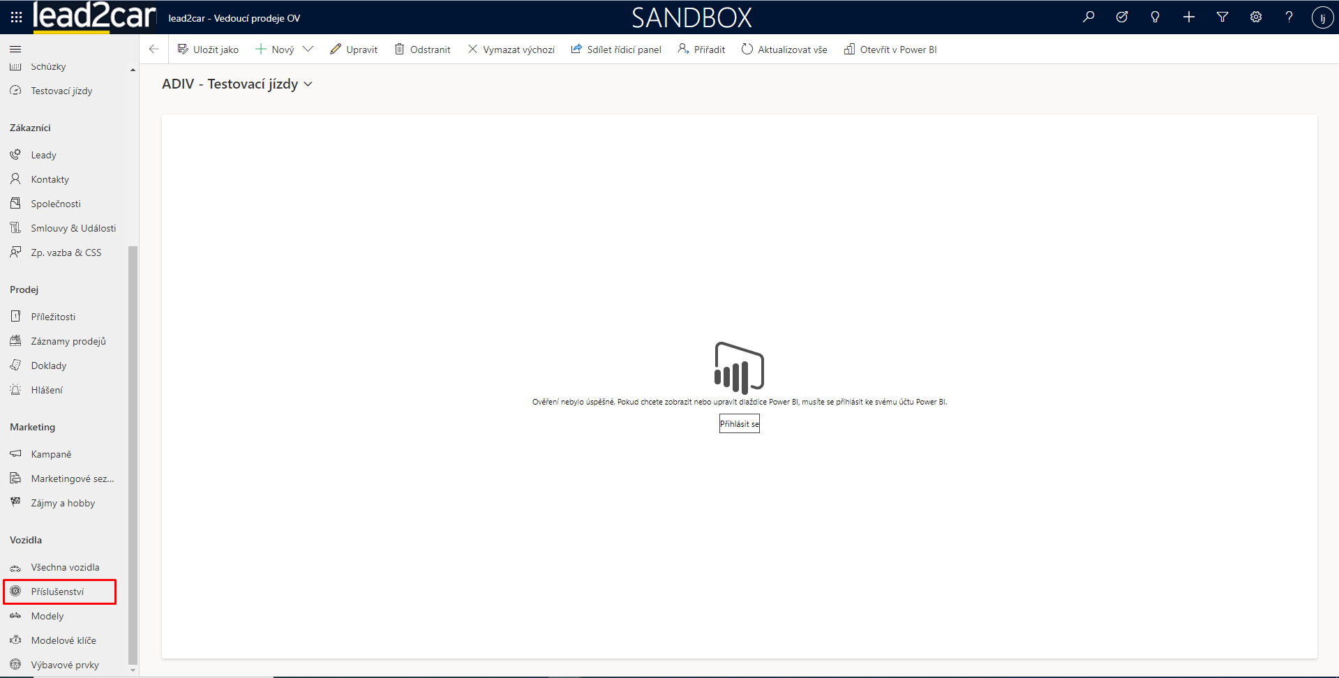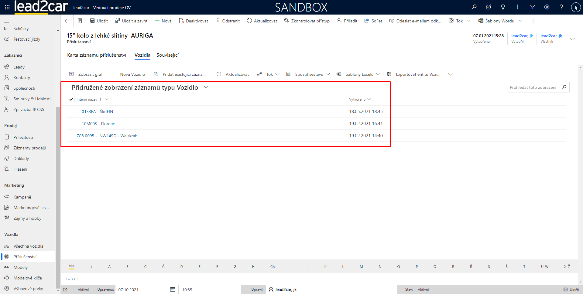 V sekci vozidla se zobrazí veškerá vozidla, která jsou daným příslušenstvím vybavena. Vozidlo je možné rozkliknout a zjistit o něm tak další informace.