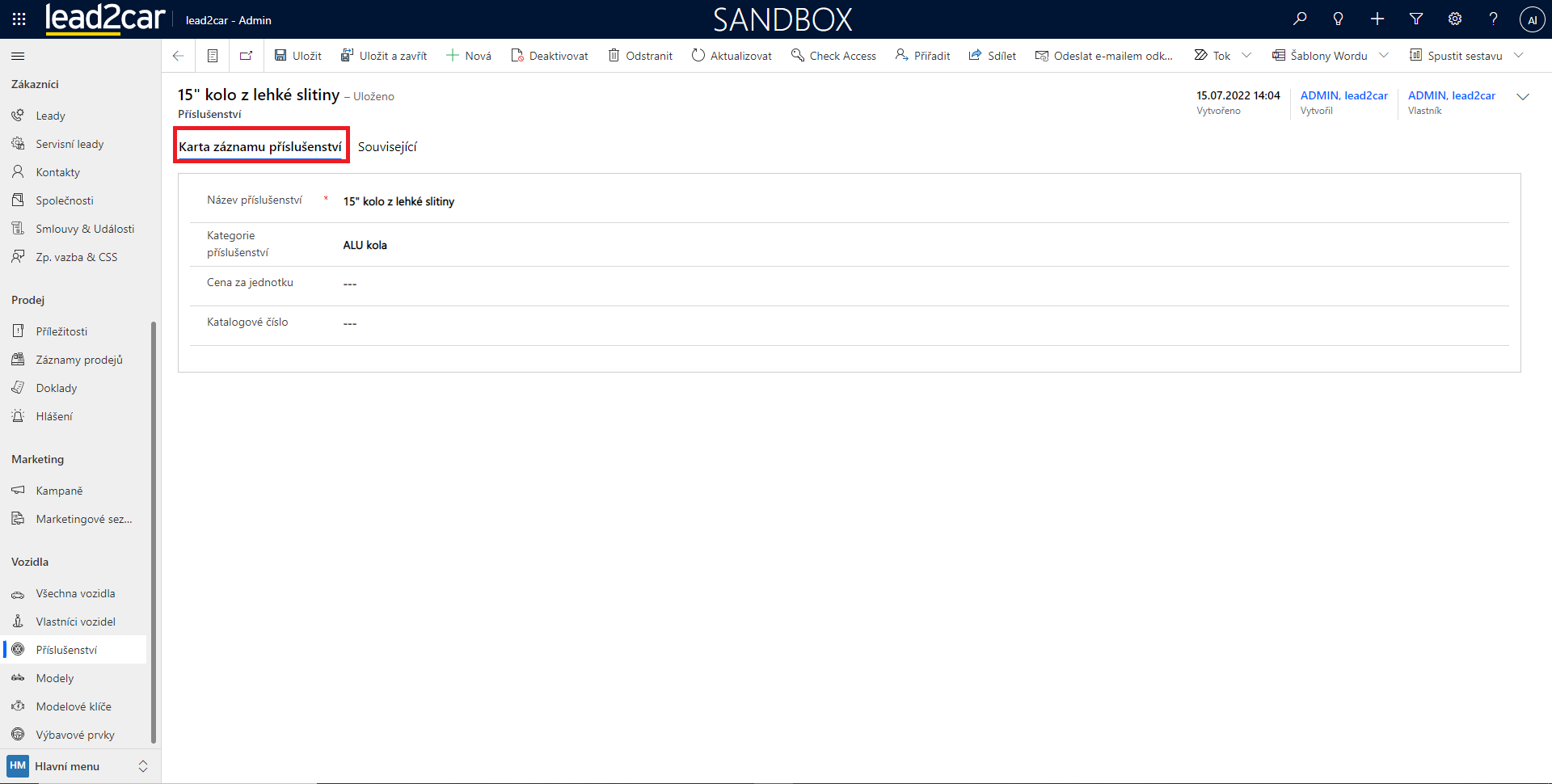 Vytváření nového příslušenství není zpřístupněno všem uživatelům. V případě potřeby kontaktujte prosím zákaznickou podporu.