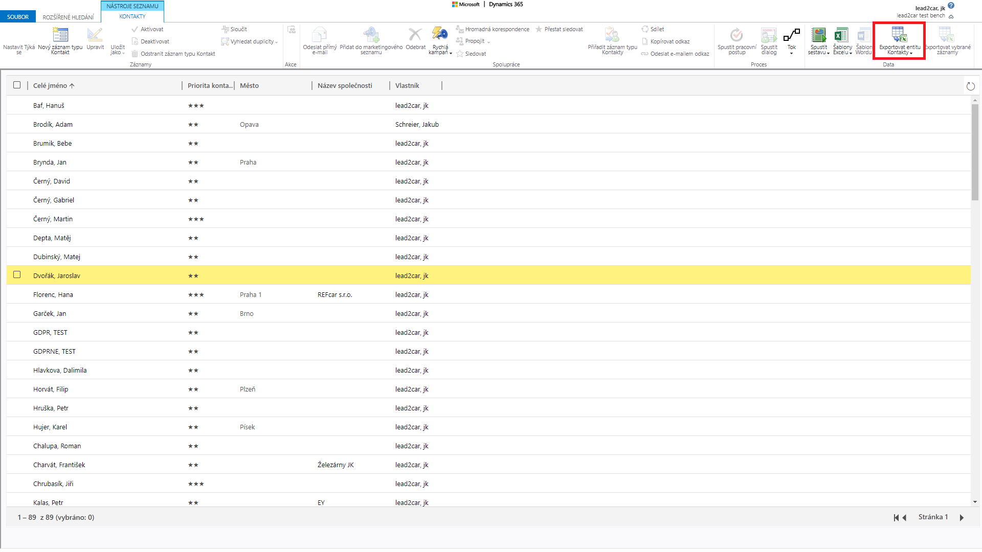 Zobrazí se Vám seznam záznamů odpovídající vašim podmínkám, a sloupcům které jste zvolili. Pokud budete tyto záznamy exportovat do excelu zvolte možnost „Export“ v horní liště.