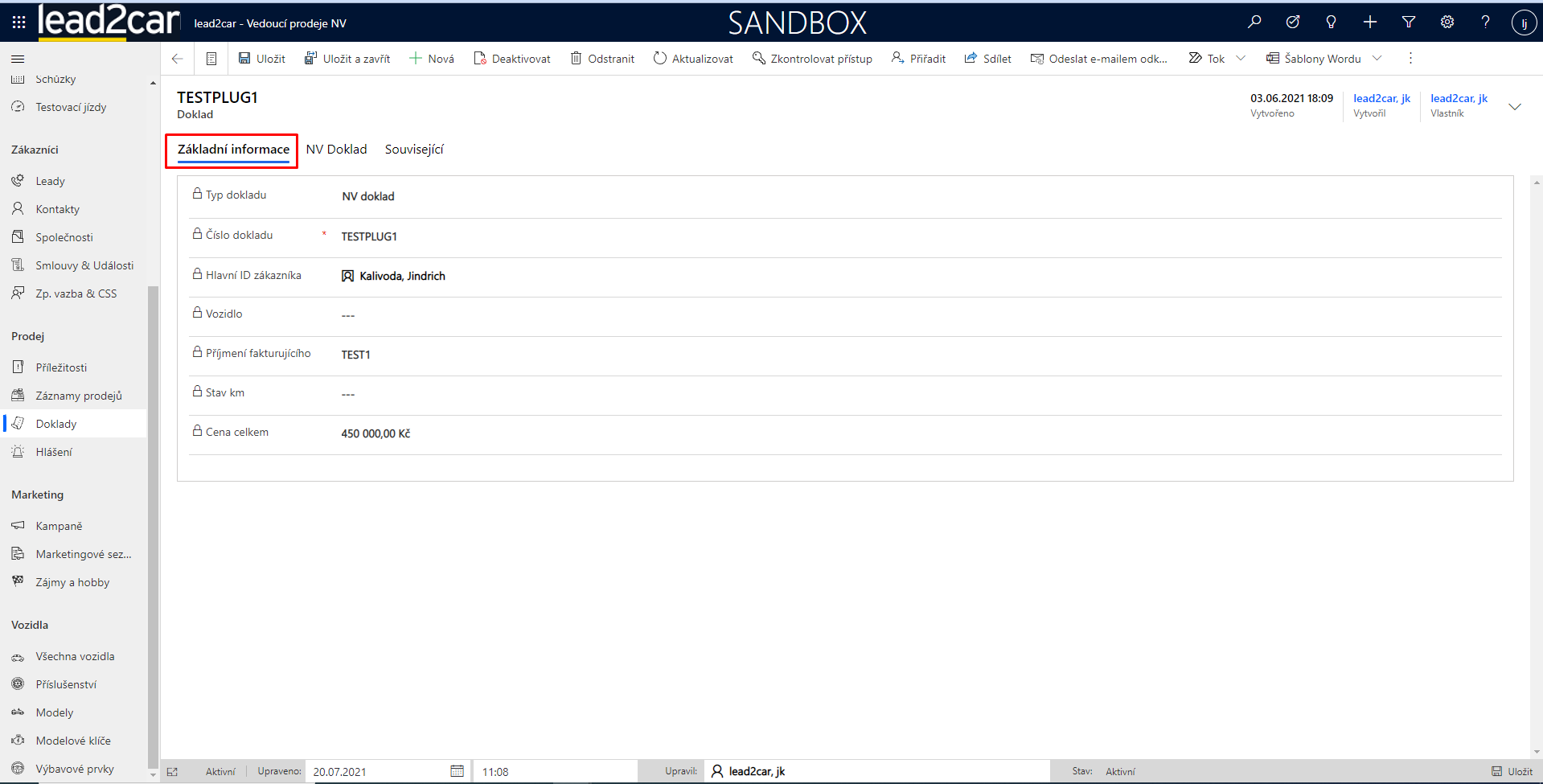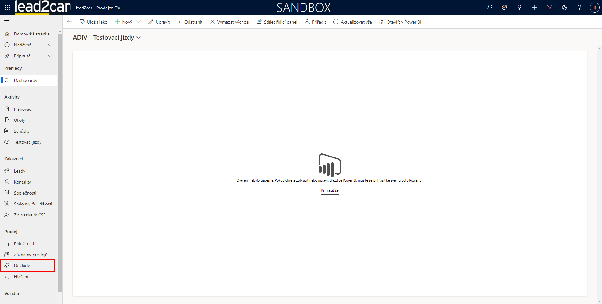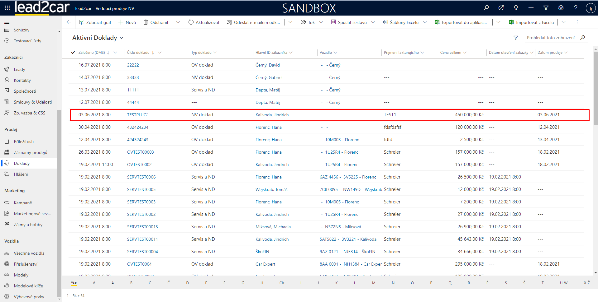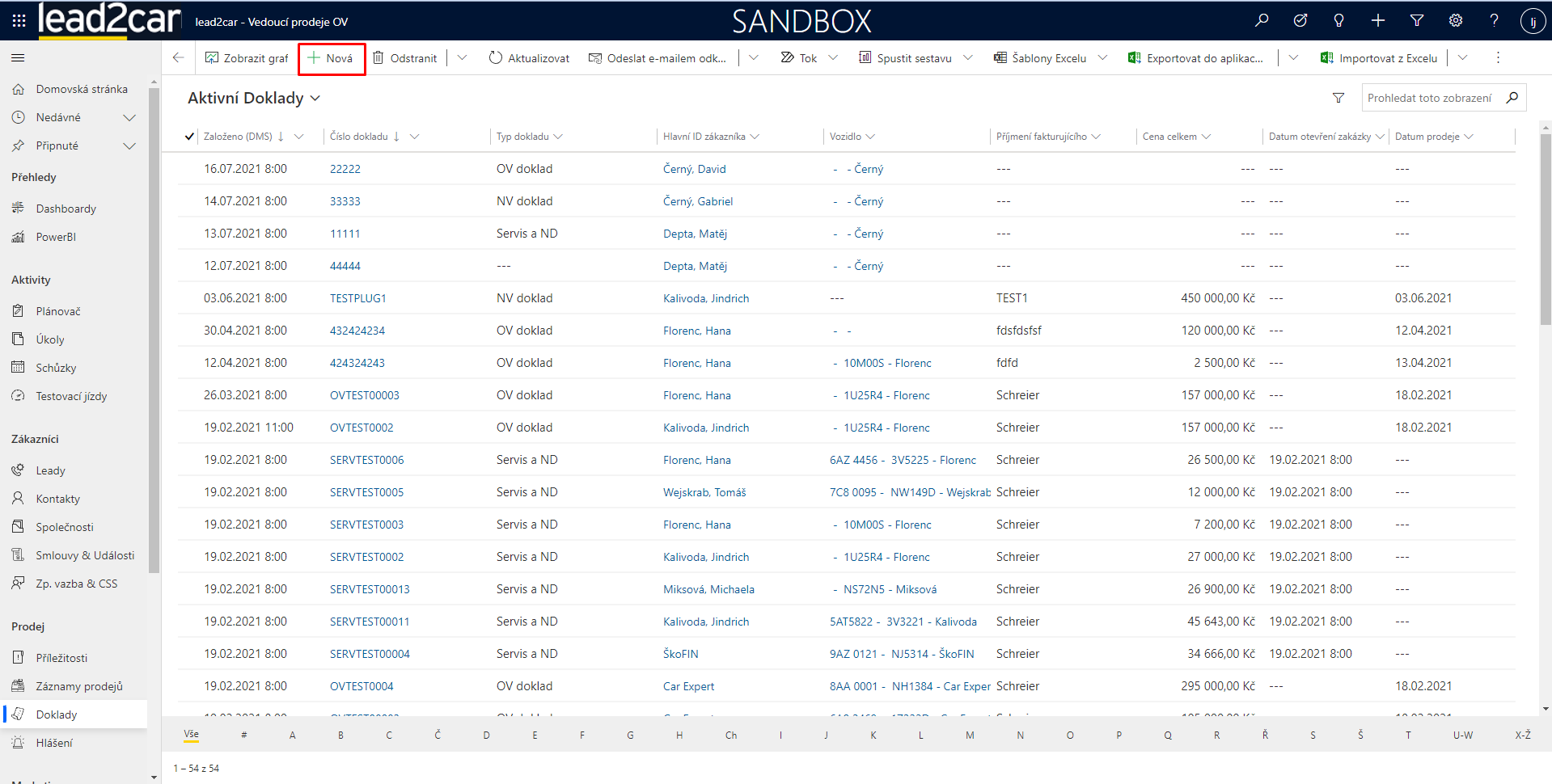 V entitě "doklady" je možné doklady vytvářet nebo prohlížet. Nacházejí se zde doklady k prodaným autům, nebo k provedeným servisům.