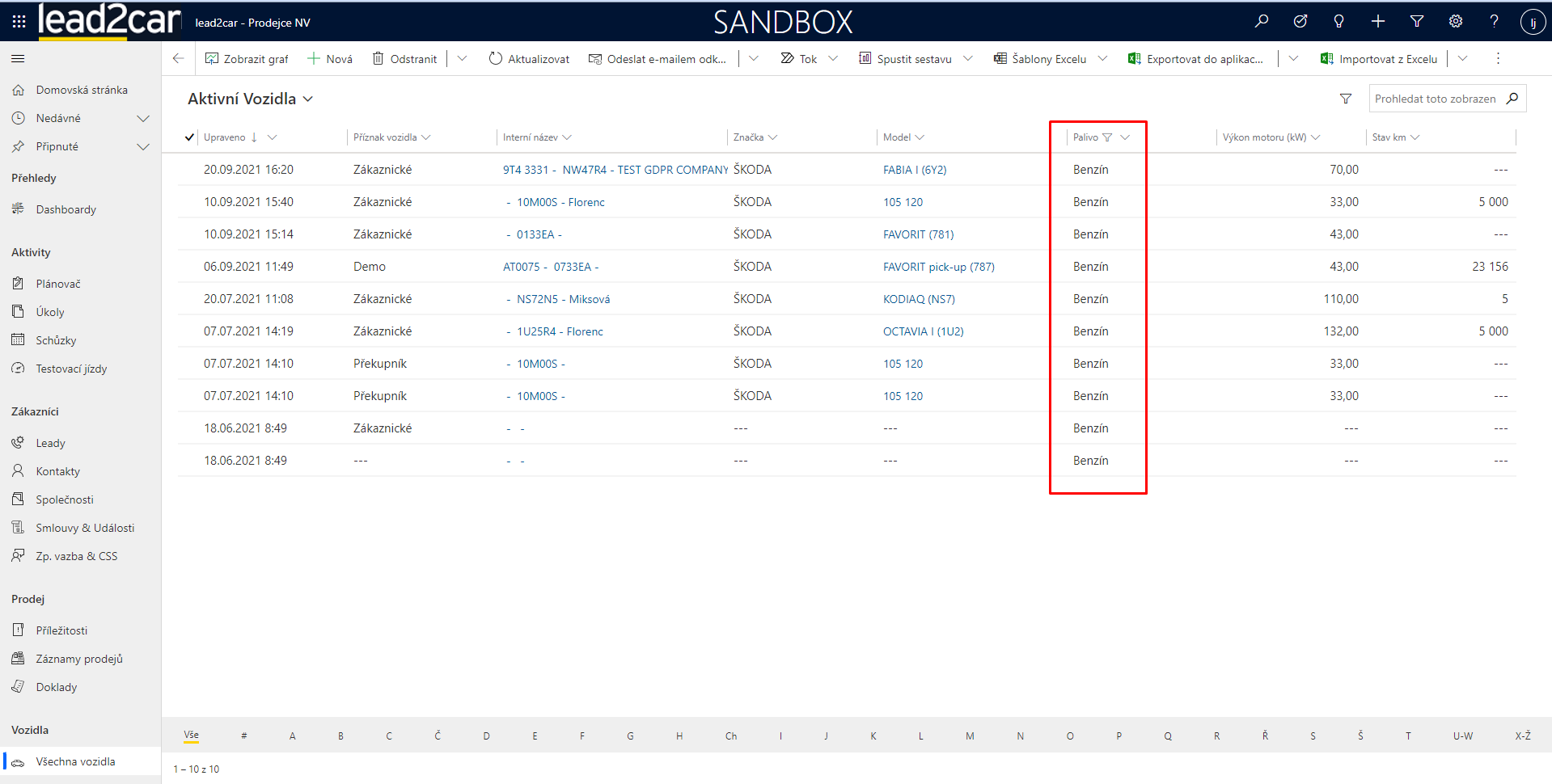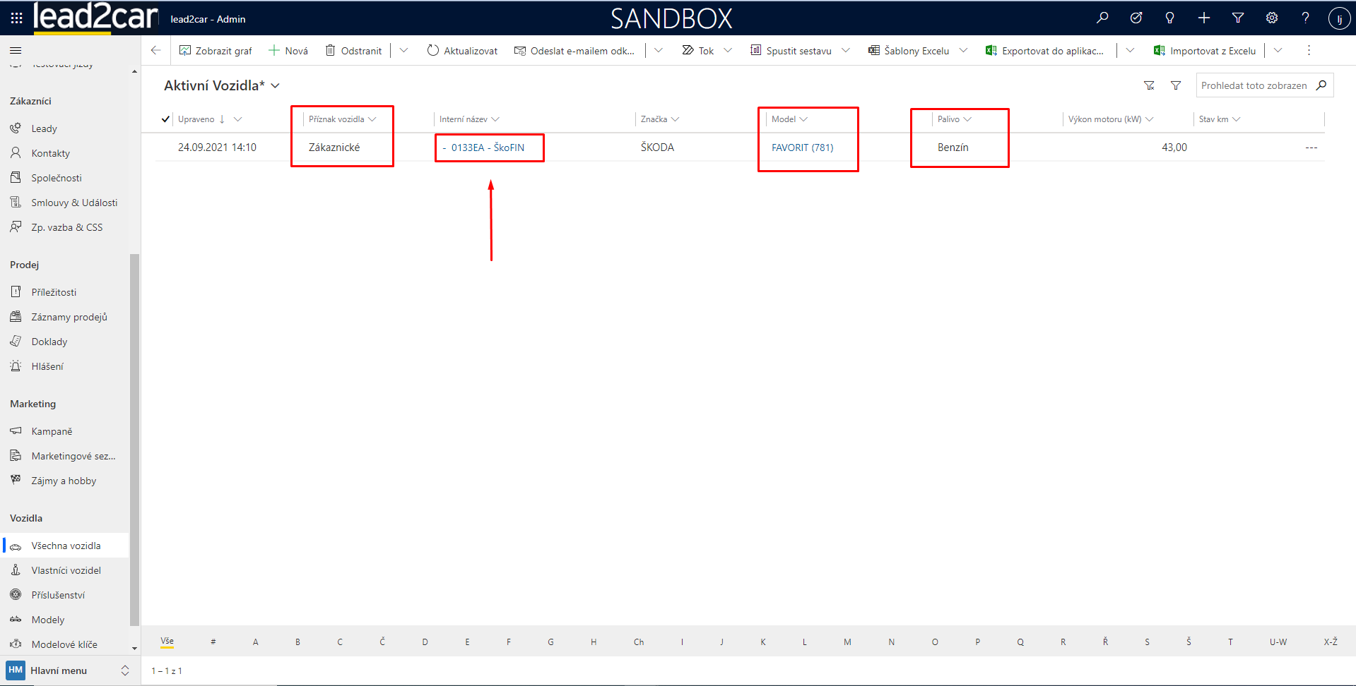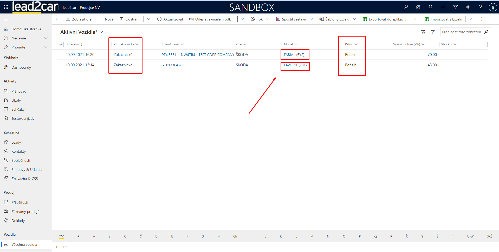 4) Provázané záznamy na entitě Vlastník vozidla obsahují data v poli Vlastníci vozidel