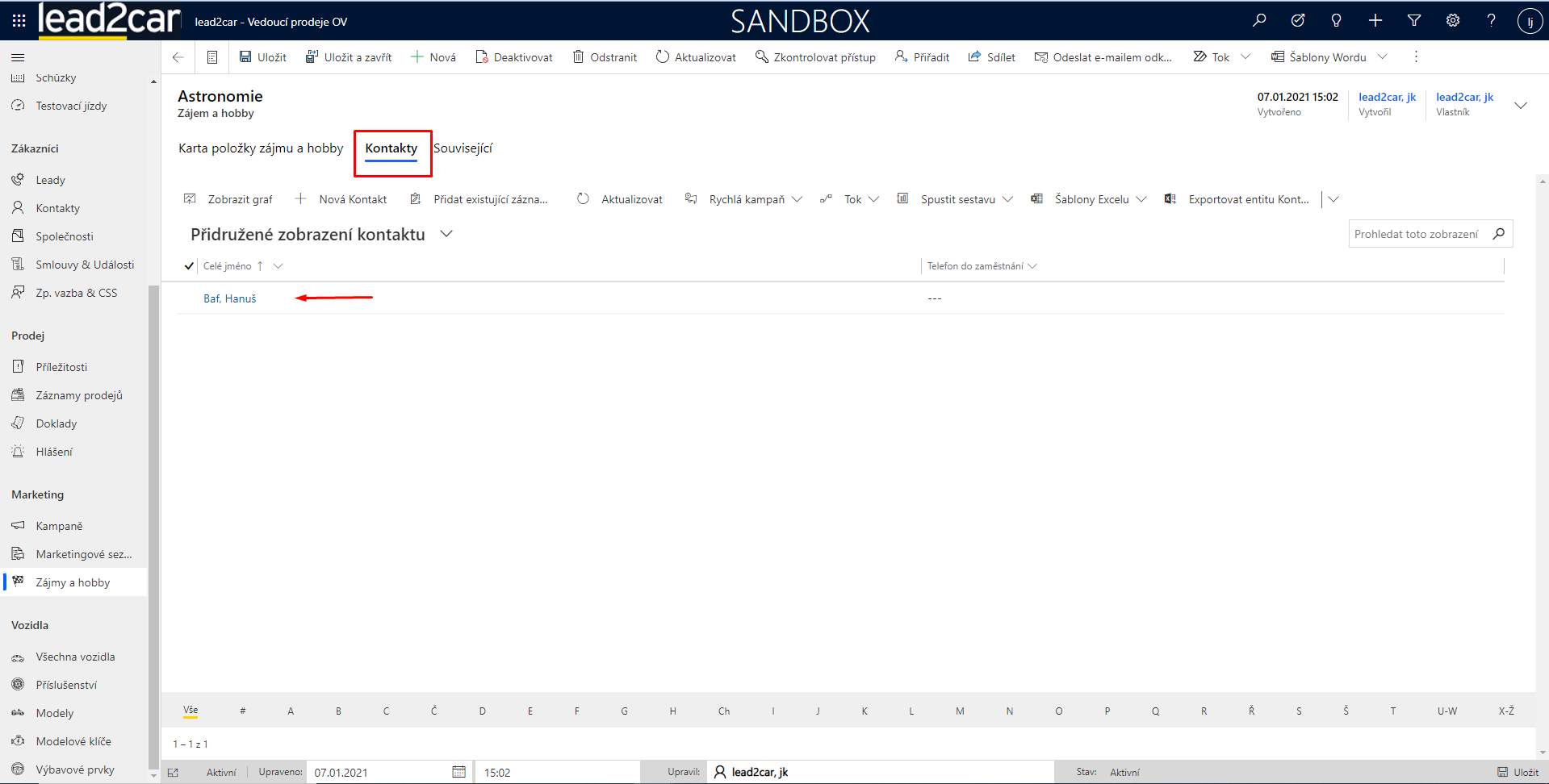 U stávajícího zájmu si lze ještě otevřít možnost související, ve které se nacházejí například údaje o kontaktech se stejným zájmem.