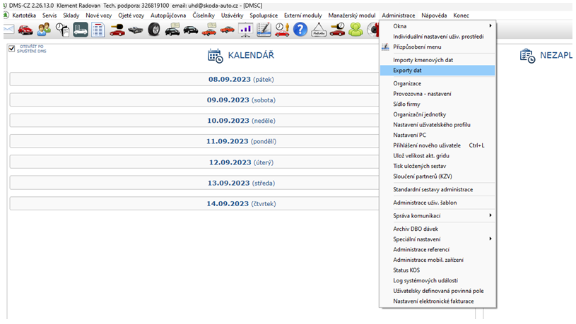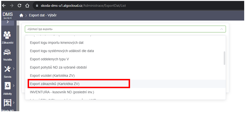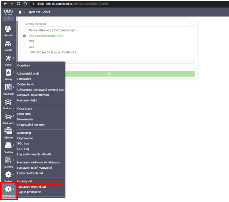 Exporty může provádět uživatel s potřebnými oprávněními v DMS, typicky půjde o správce DMS.