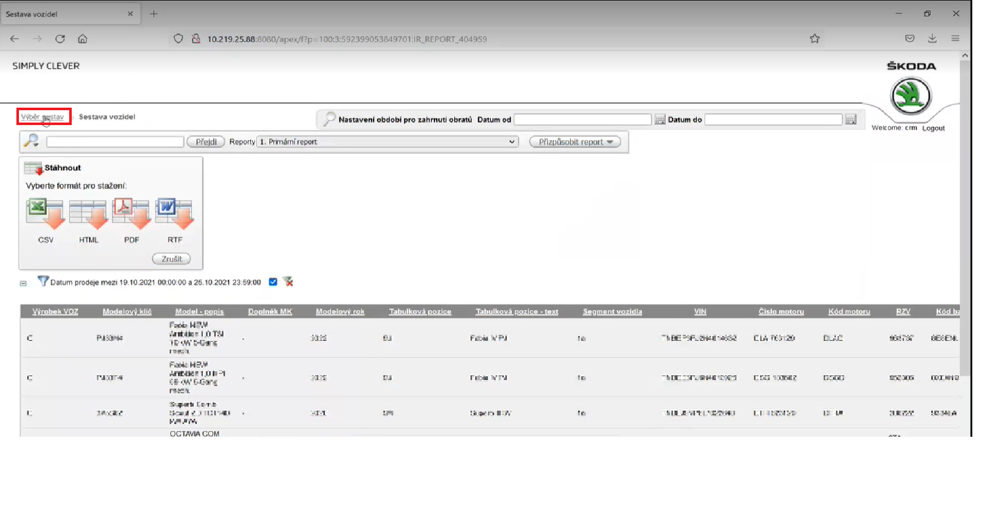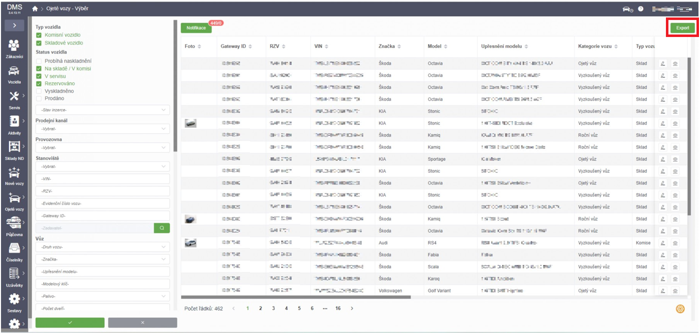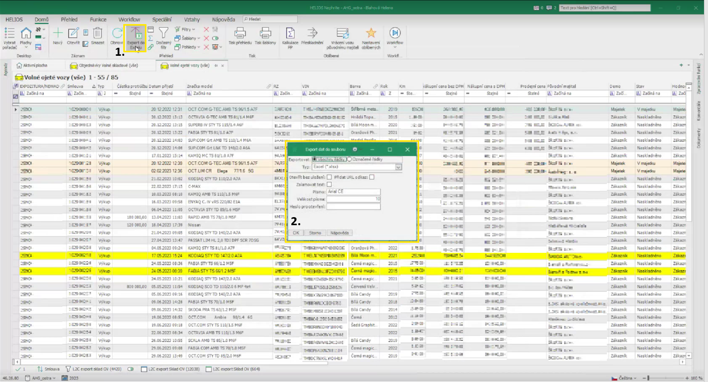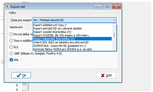 | APEX - Vozidla | celá databáze | 4. Export vozidel |
