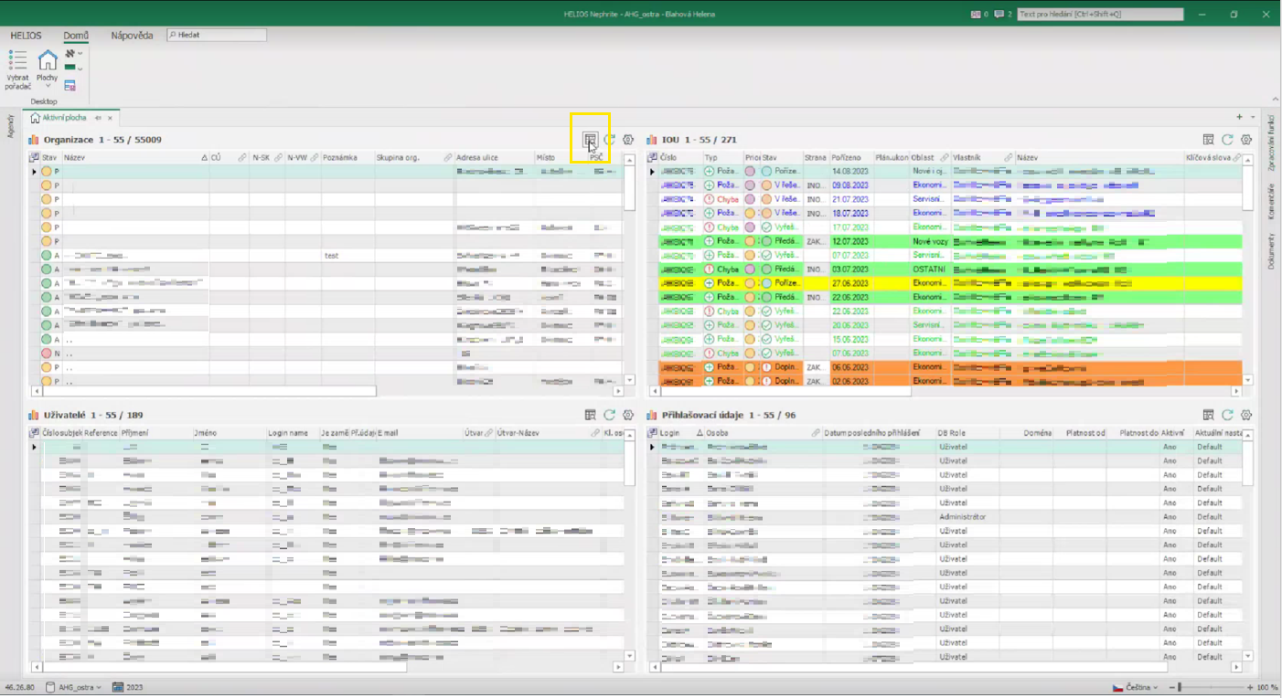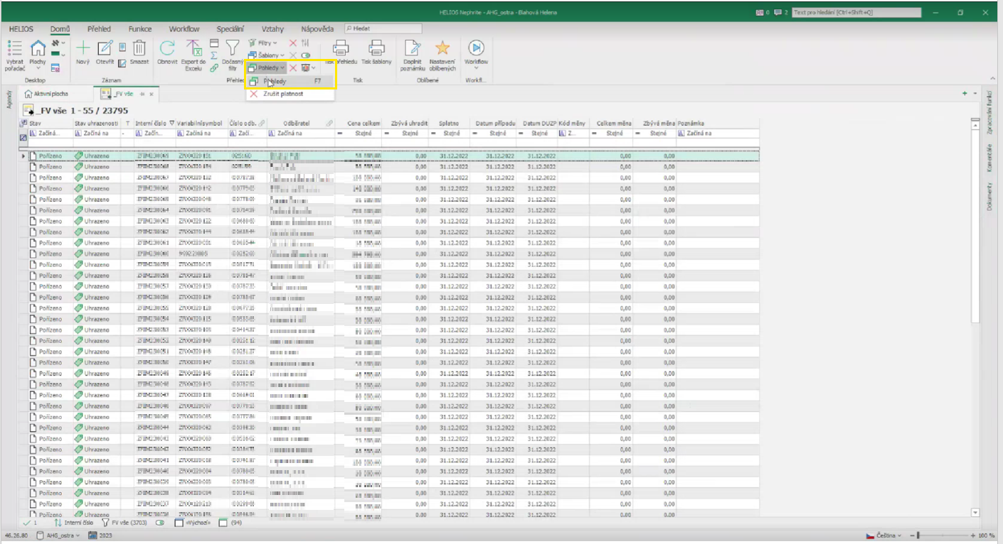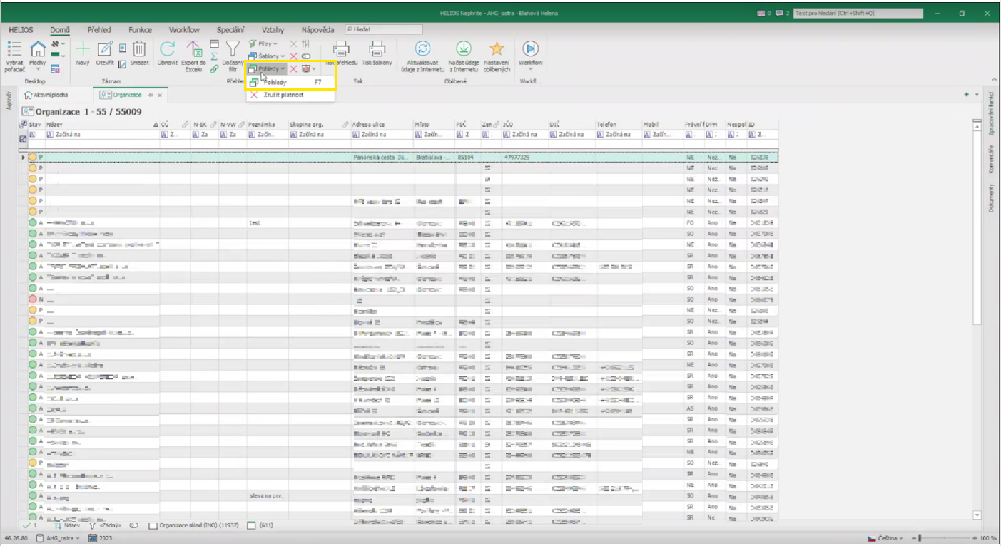 Tímto klikem nás systém přenese k seznamu všech zákazníků, kde je třeba si vybrat potřebný pohled tlačítkem Pohledy v horní liště.