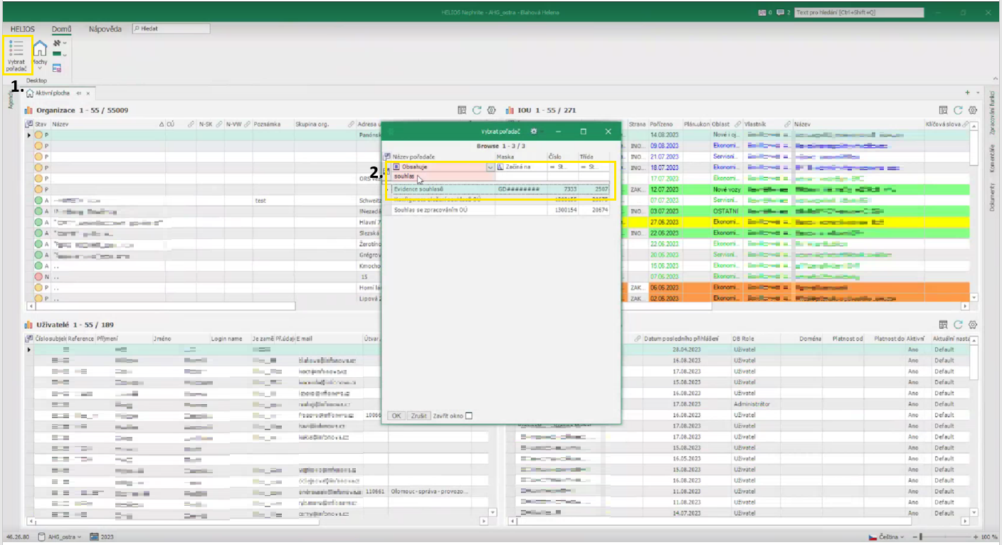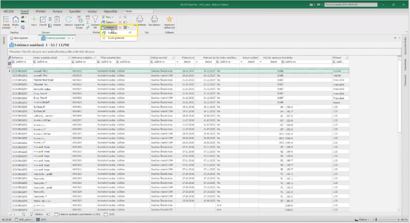 Pomocí filtru ve sloupci Platnost od lze souhlasy časově omezit. Pokud bychom chtěli například vyfiltrovat zákazníky, kteří byli v systému založeni v srpnu 2023, napíšeme do filtru 8.2023.