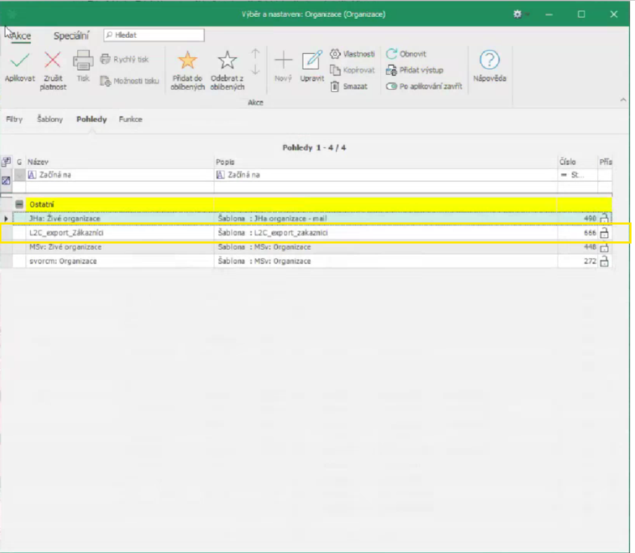 Nyní se objeví tabulka, kde je třeba vybrat pohled L2C_export_Zákazníci.