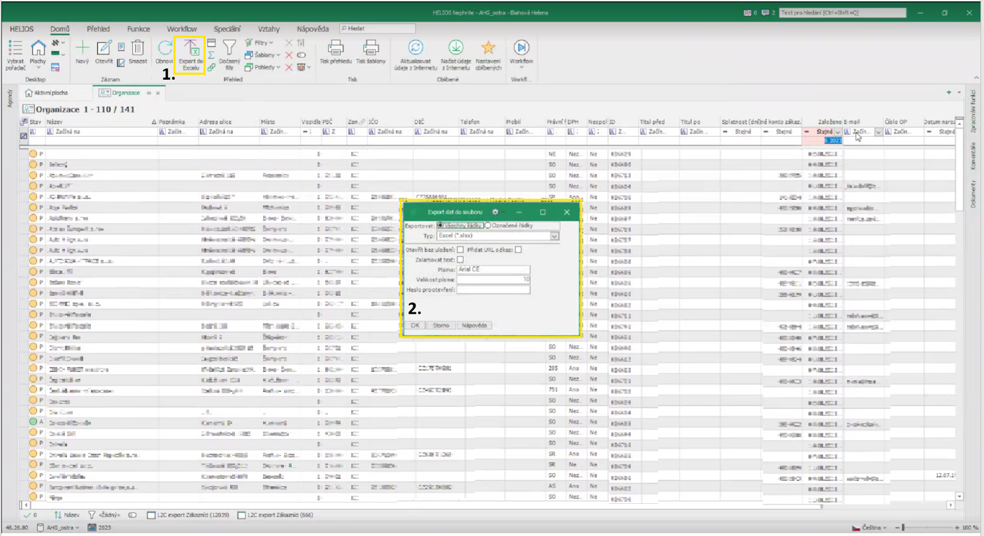 | APEX - Zákazníci | celá databáze | 3. Export zákazníků |