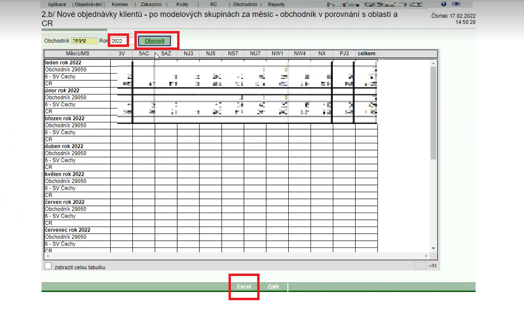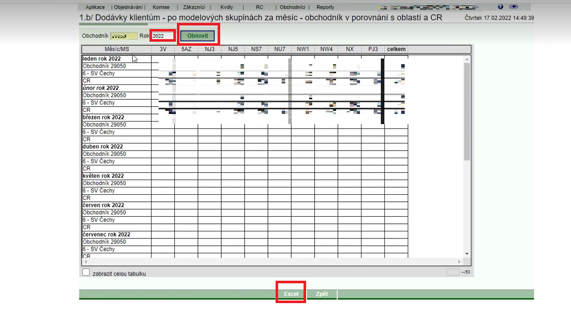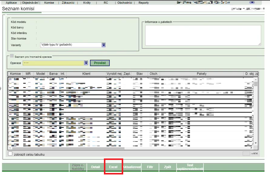 Následně tabulku exportujeme do Excelu tlačítkem v dolní části stránky.