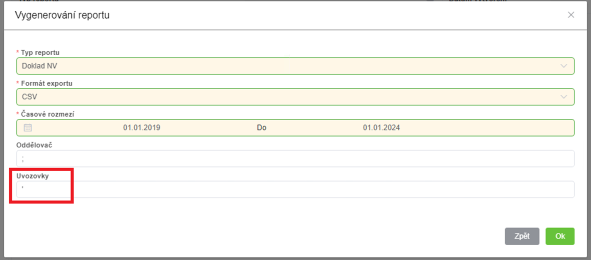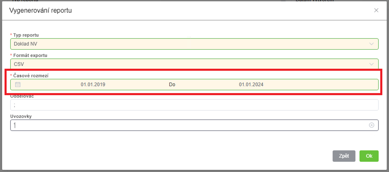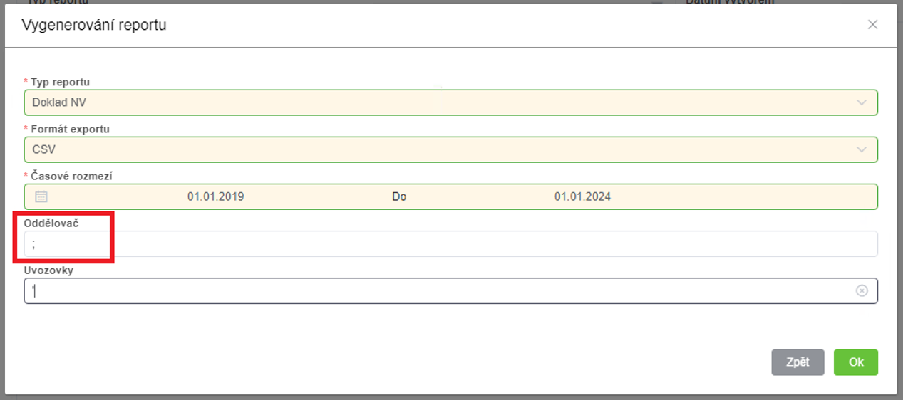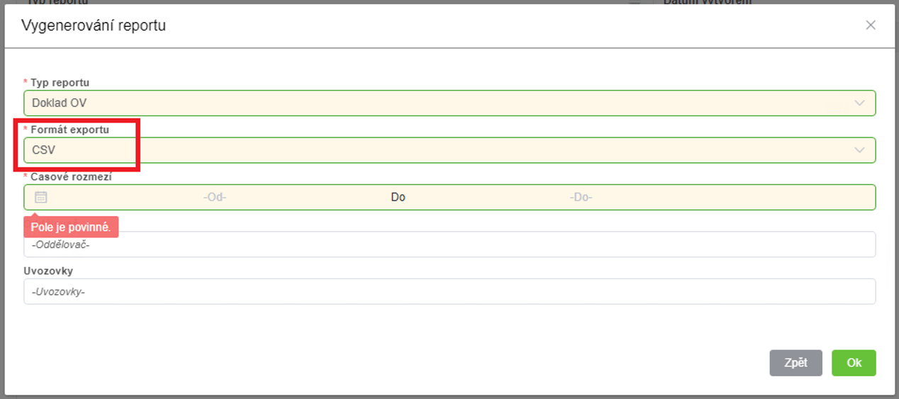 Klikneme na OK a vygenerujeme export. Generování reportu může nějakou chvíli trvat (především pro report Doklad Servis).