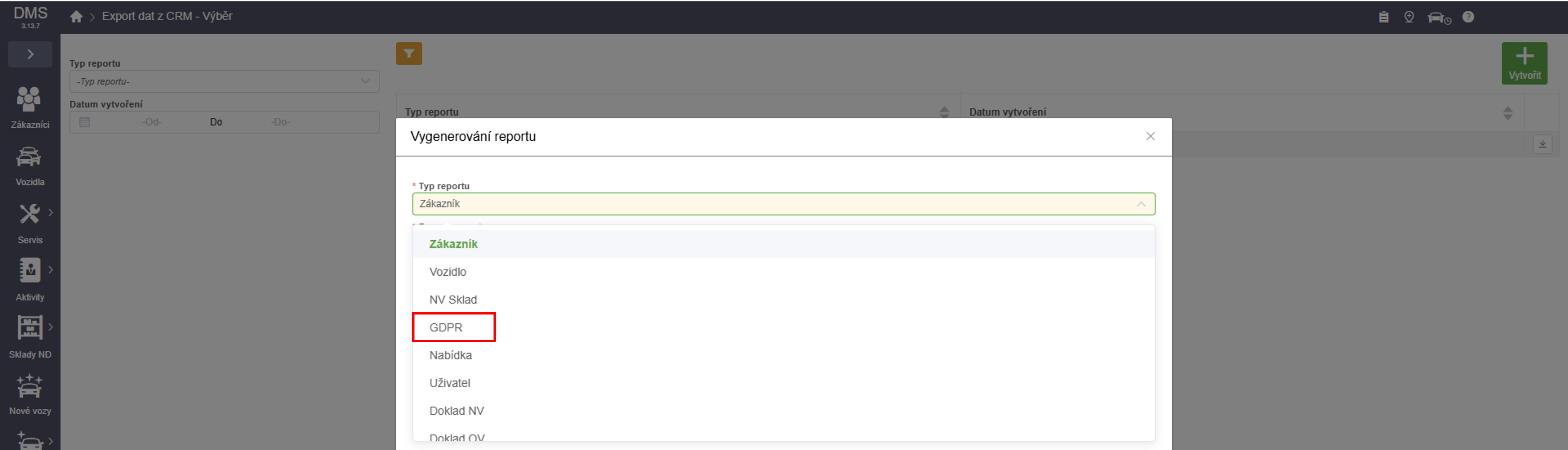 Zvolíme potřebný export. Pro CRM jsou potřeba exporty: