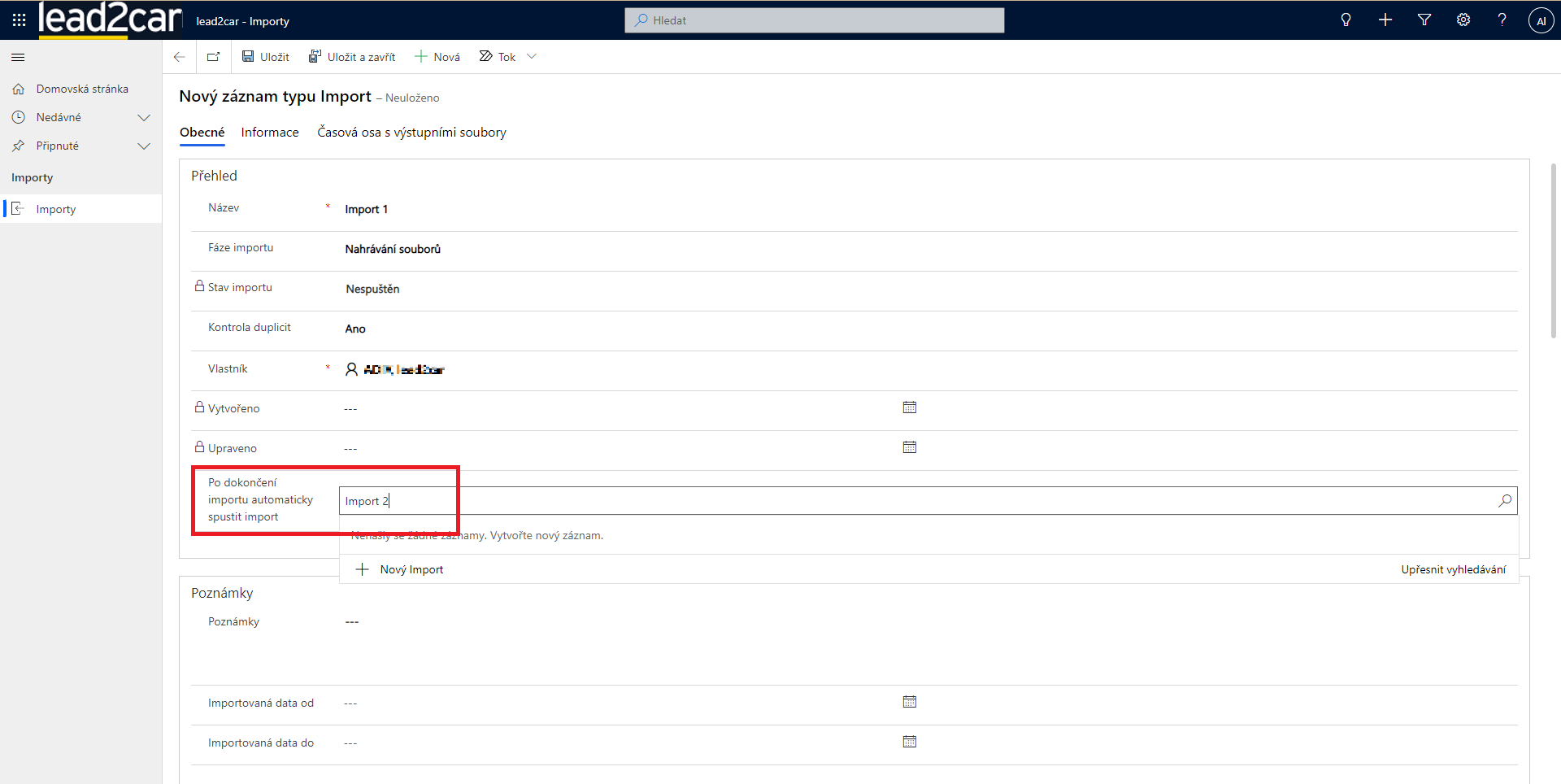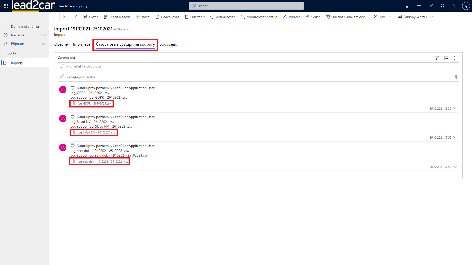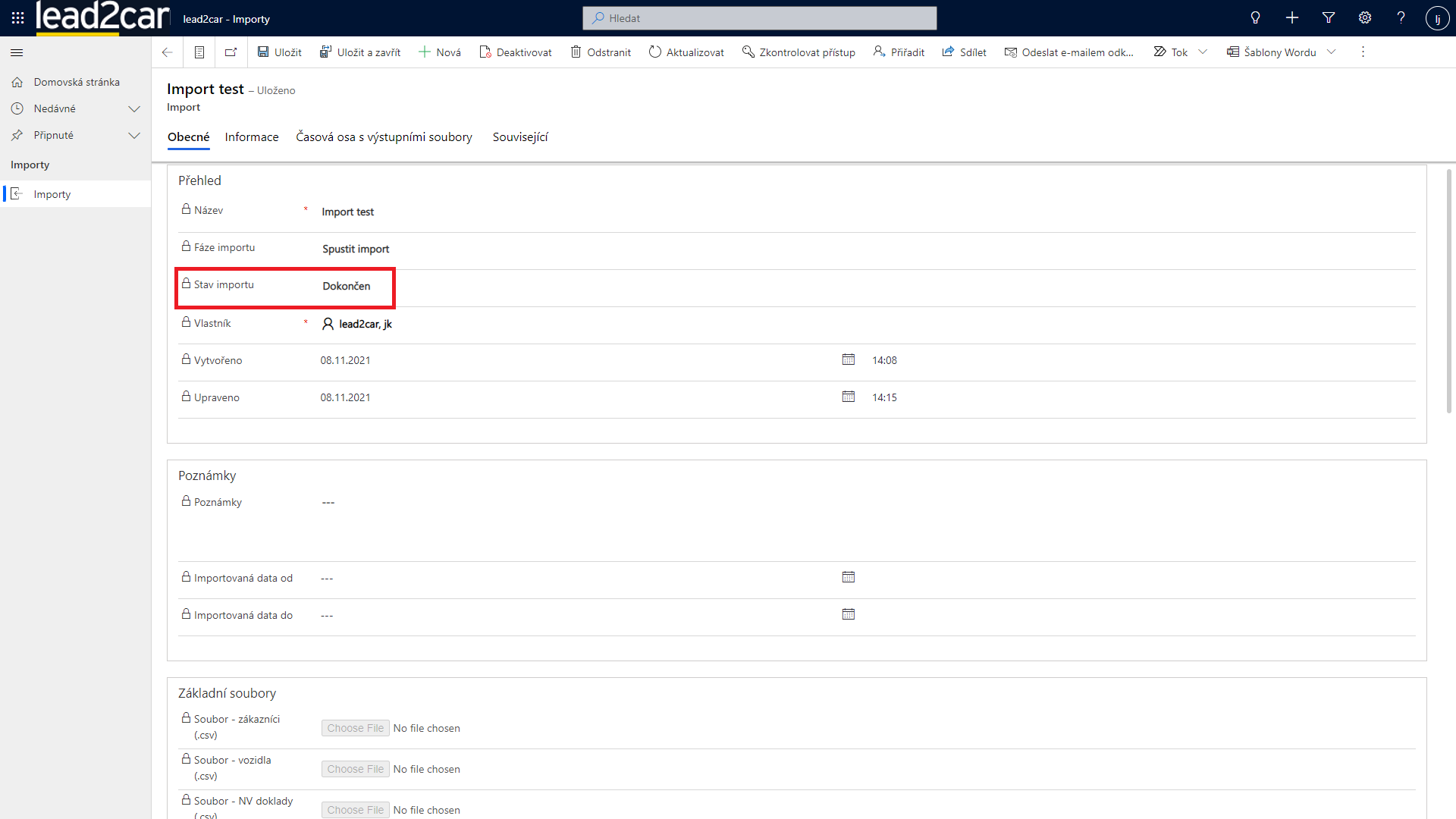 Stažená data z Profinu je nutné nahrát je do Lead2car. To se dá udělat přímo v rozhraní L2C v aplikaci "led2car - importy".