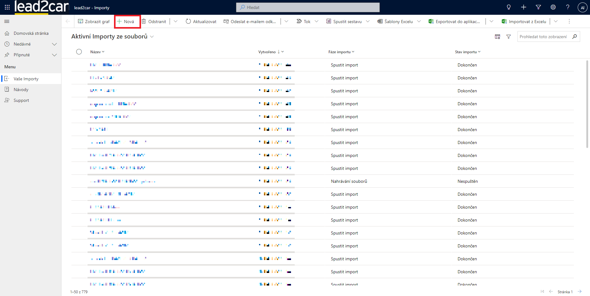 V prostředí importního toolu zvolte navrchu možnost „+ Nová“.