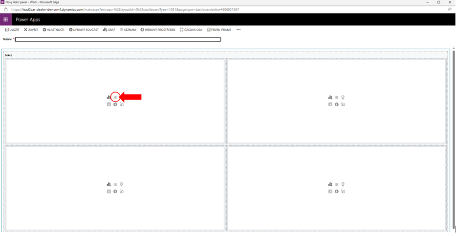 V nově vytvořeném dashboardu klikněte na ikonku seznamu pro vložení nové komponenty.