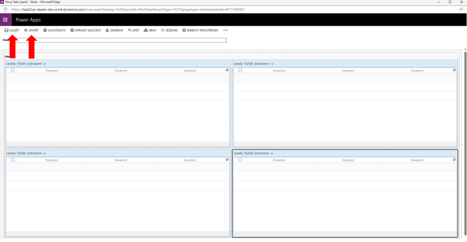 Jakmile máte všechny sekce vyplněné, zadejte název pro váš nový dashboard, například "Můj dashboard", a klikněte na "Uložit" a pak na "Zavřít". Dashboard se nyní uloží a objeví se v seznamu dostupných dashboardů.