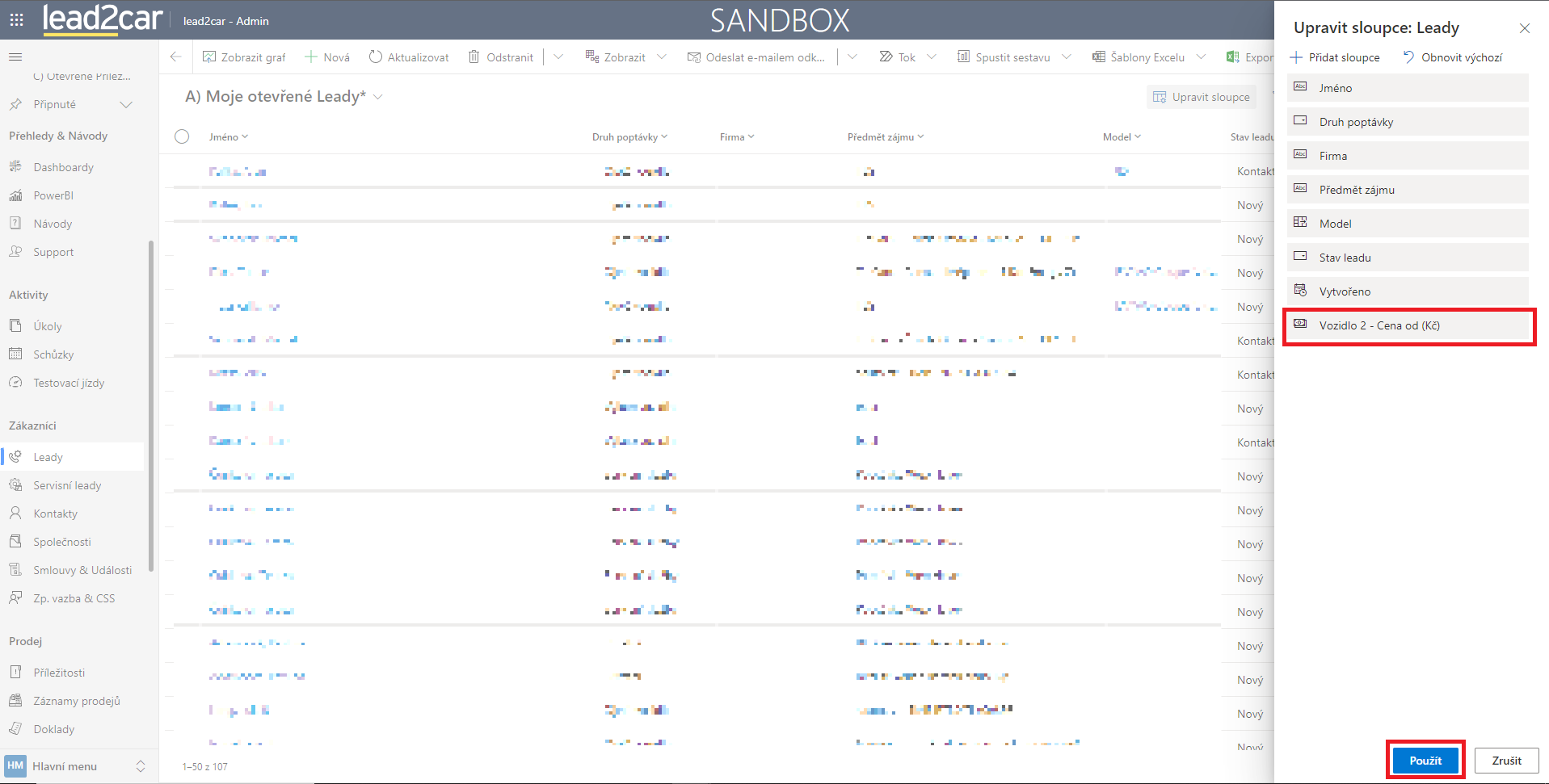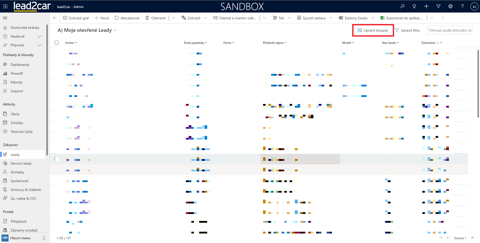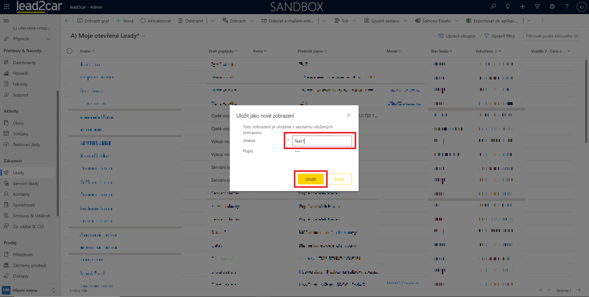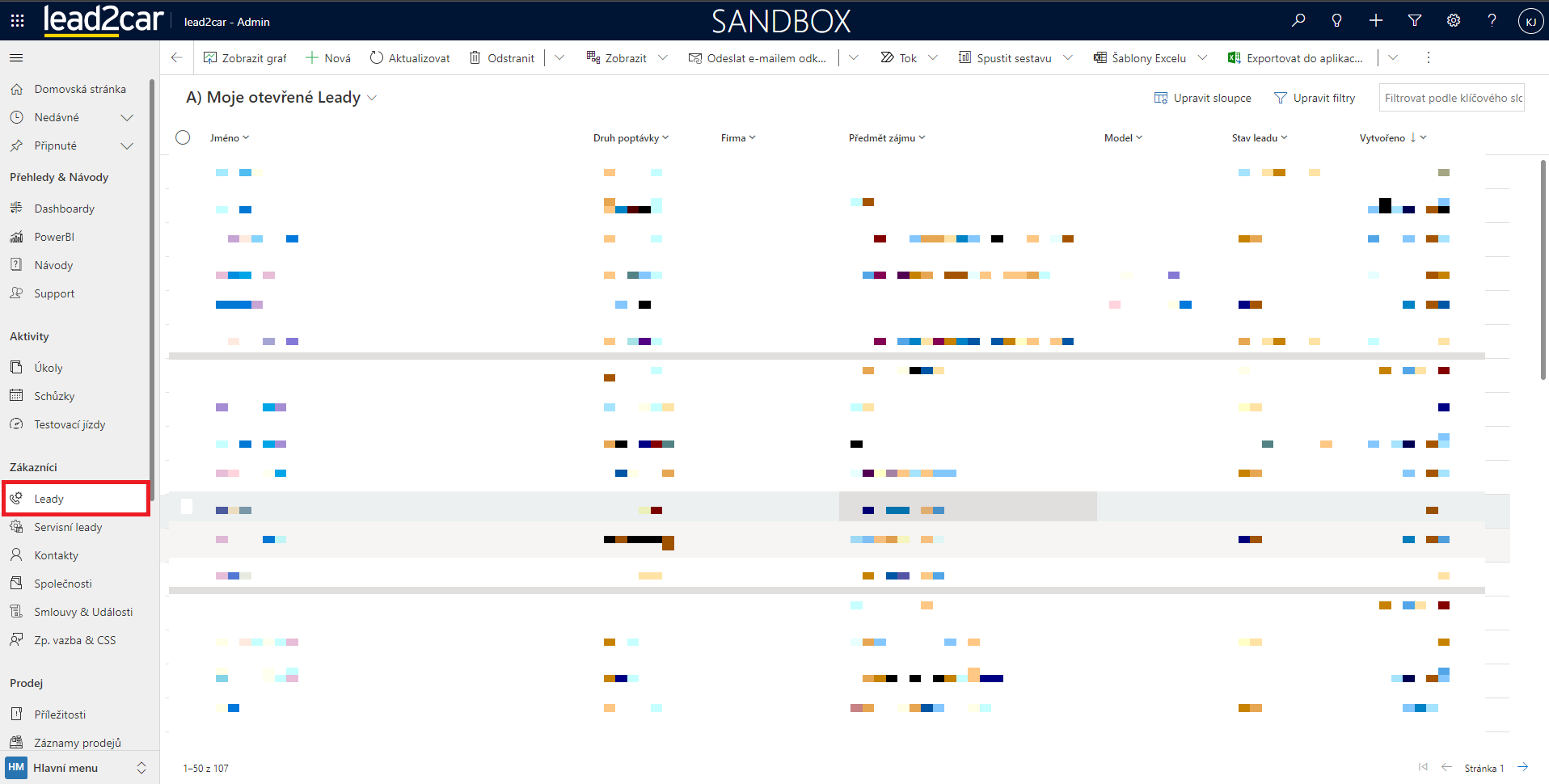 Vlastní zobrazení lze vytvořit na základě jakéhokoliv již existujícího zobrazení v Lead2Car. V tomto návodu budou za účelem tvorby vlastního zobrazení využity A) Moje otevřené Leady.