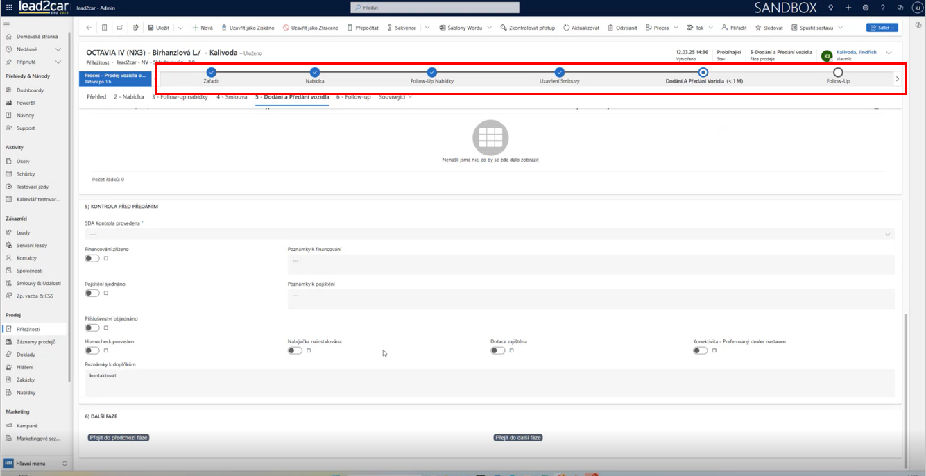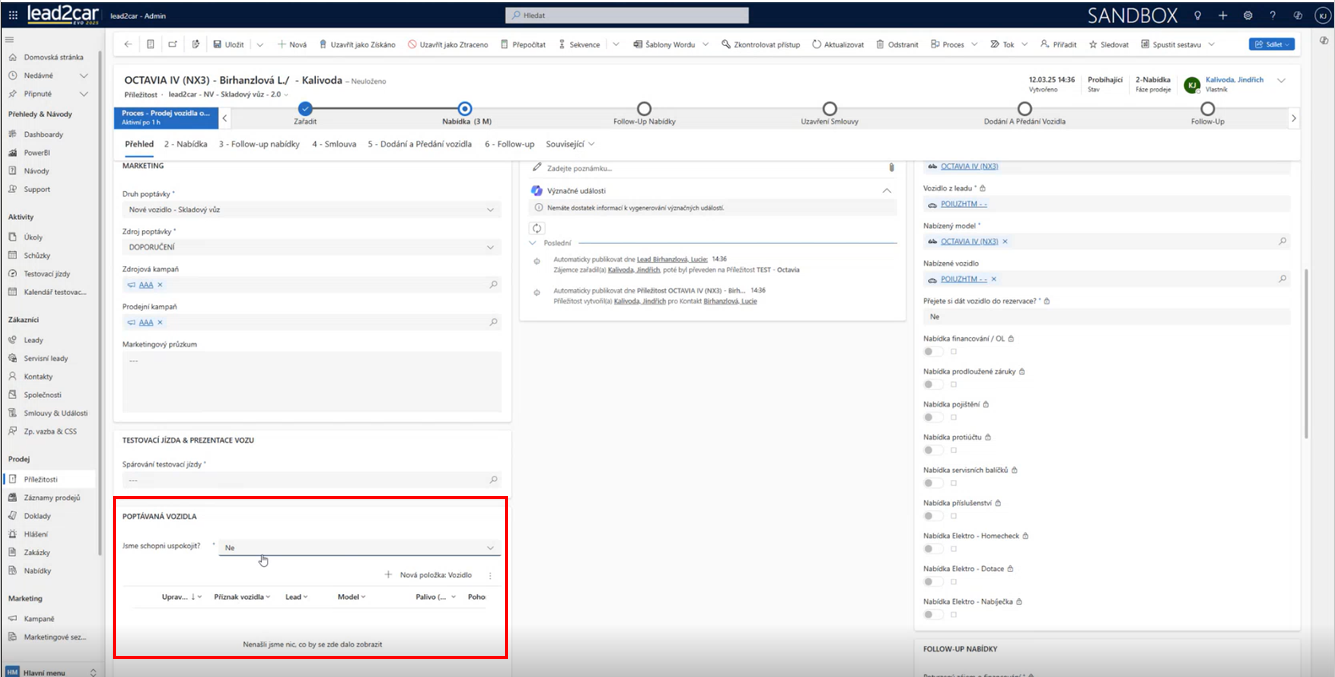 Pro správné fungování reportů a automatizací je klíčové, aby prodejci informace v systému aktivně vyplňovali. Díky tomu lze lépe sledovat zájem zákazníků o doplňkové služby a zvyšovat tak hodnotu zákazníků pro dealerství.