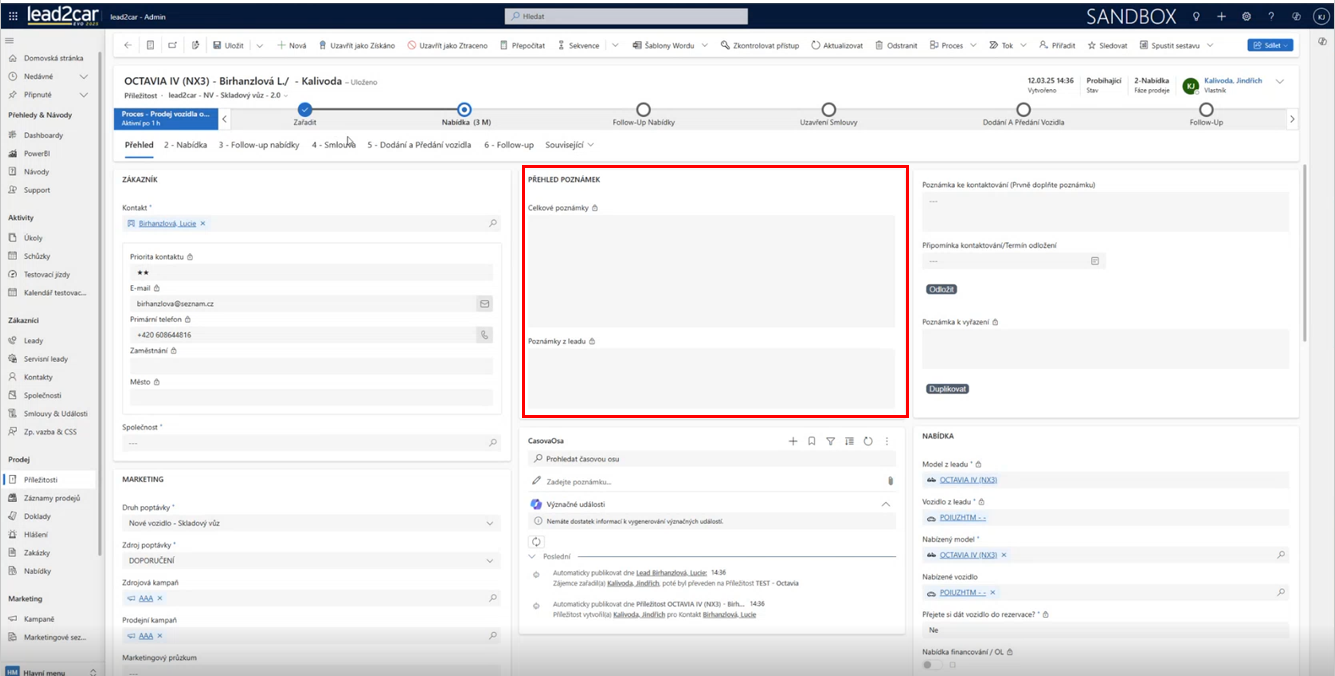 Nově byla přidána sekce "Celkové poznámky", která centralizuje všechny poznámky z jednotlivých kroků příležitosti. Pokud si například poznamenáte důležité informace ve 4. kroku a později se k příležitosti vrátíte, všechny poznámky naleznete na jednom místě.