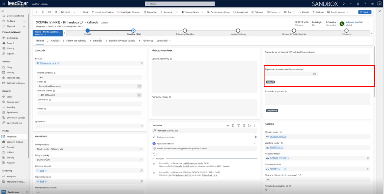 V nové verzi systému Lead2Car došlo k výraznému zjednodušení procesu práce s příležitostmi. Původních deset kroků bylo zredukováno na méně kroků, což zrychluje a usnadňuje práci. Formulář je nyní intuitivnější a přehlednější.