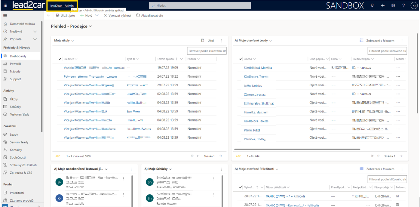 Pro práci se SmartEmailingem je třeba v lead2car zvolit aplikaci lead2car – Smartemailing. Do výběru aplikací se lze dostat kliknutím na název aplikace vpravo vedle loga lead2car v horní části Vaší obrazovky.