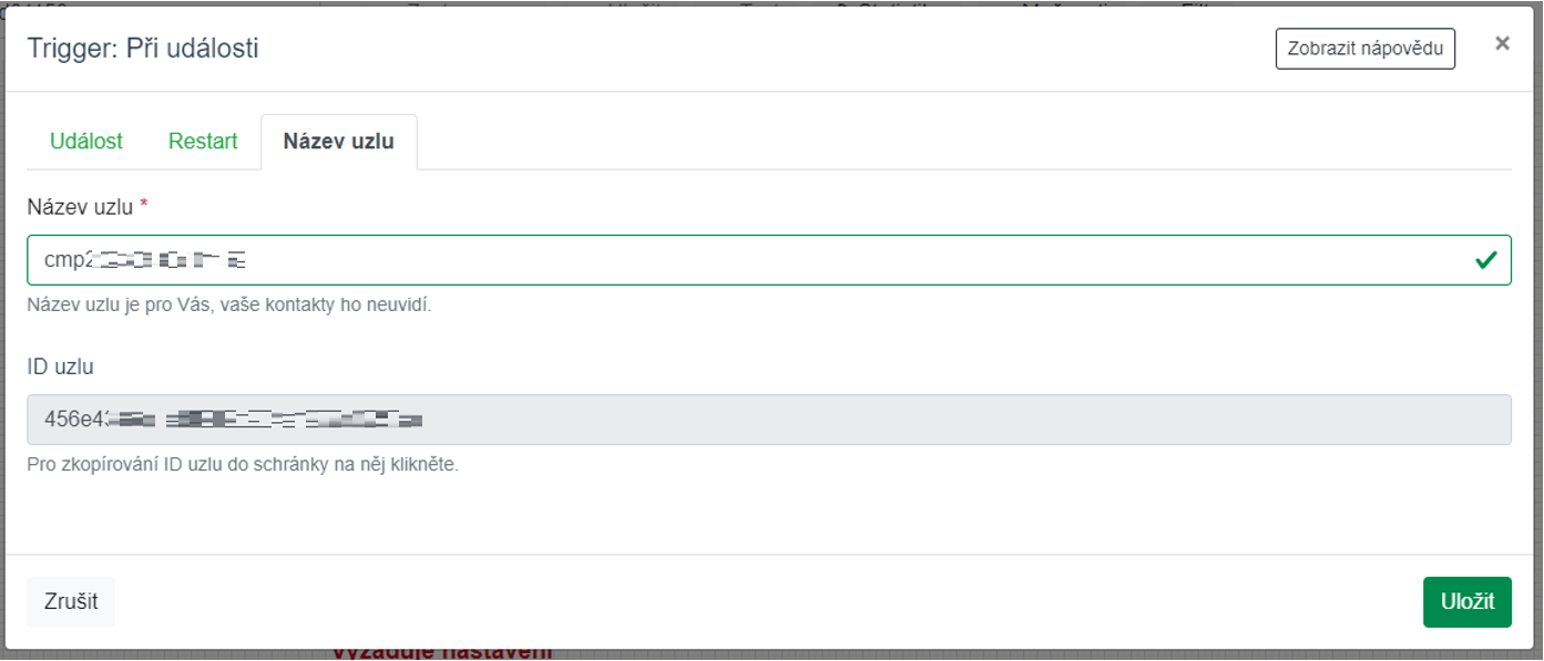 Záložku Restart nyní nebudeme potřebovat. V záložce název uzlu je třeba opět vložit unikátní název do pole Název uzlu. Pole ID uzlu neměníme.