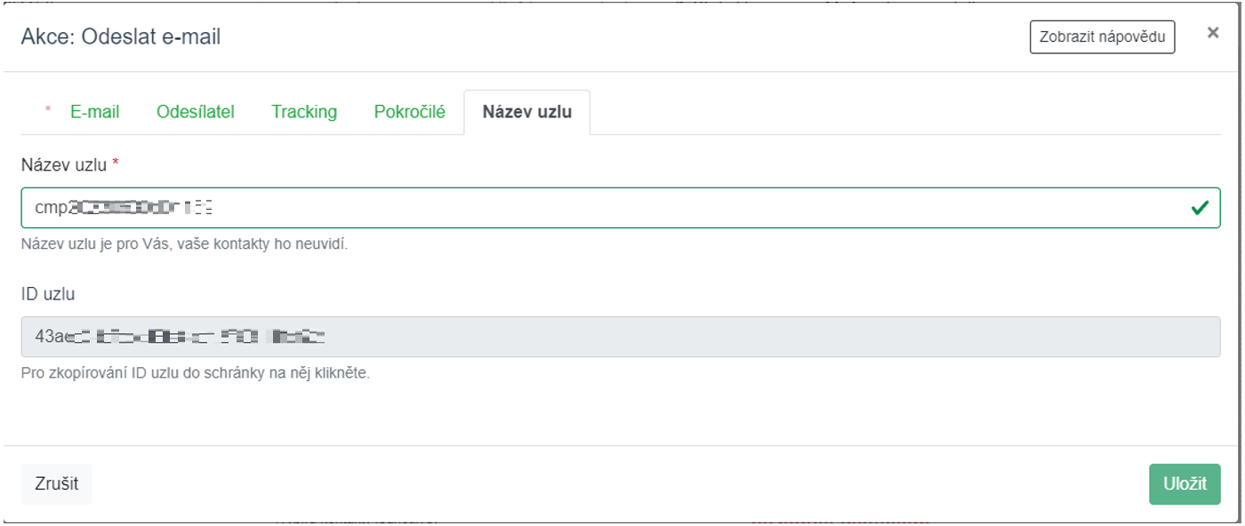 Záložky Tracking a Pokročilé nyní vynecháme. V záložce Název uzlu je opět nutné vyplnit unikátní název. Pole ID uzlu neměníme. Nyní je uzel správně nastaven a je možné ho uložit.
