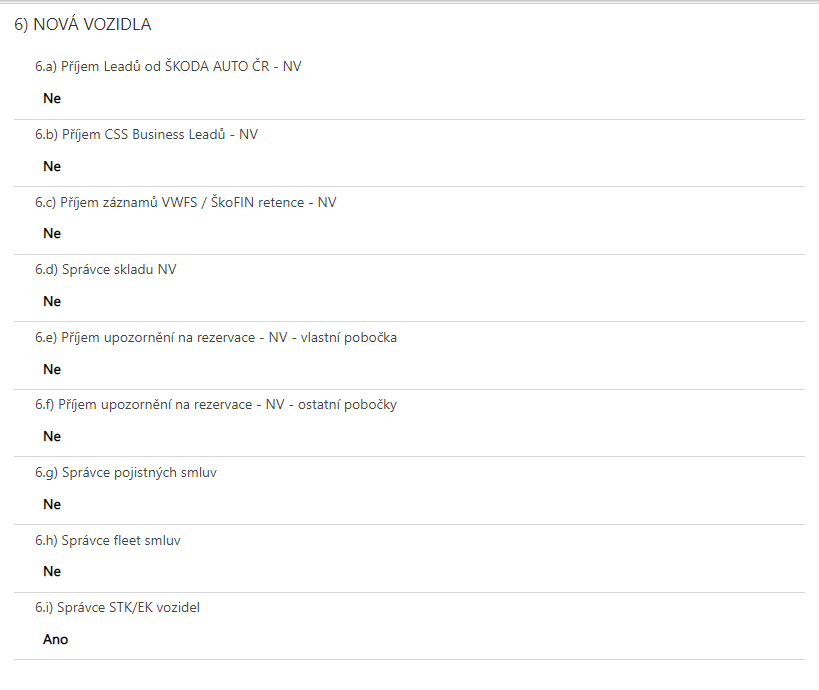 Tomuto uživateli se posílá email v okamžiku, kdy je záznam prodeje na NV vozidlo označen jako Finální. Takto označený uživatel musí být také ze stejného pracoviště jako vlastník záznamu prodeje.
