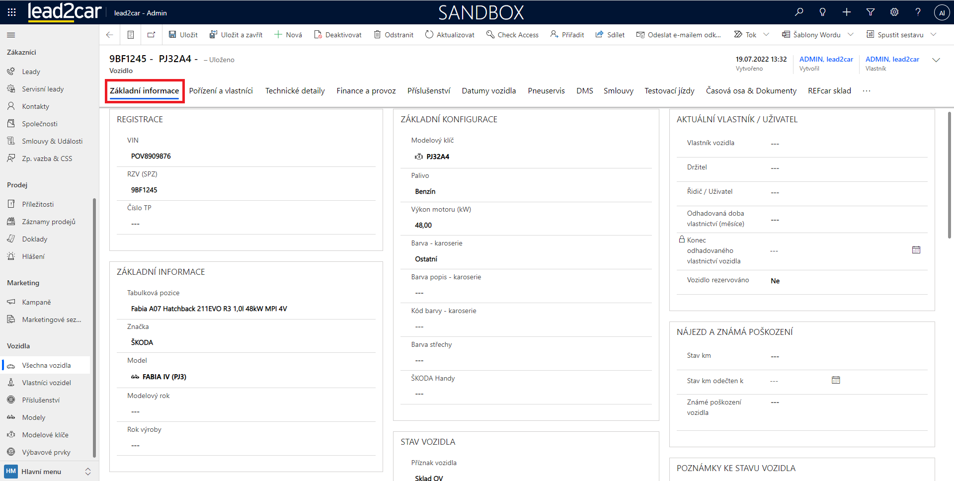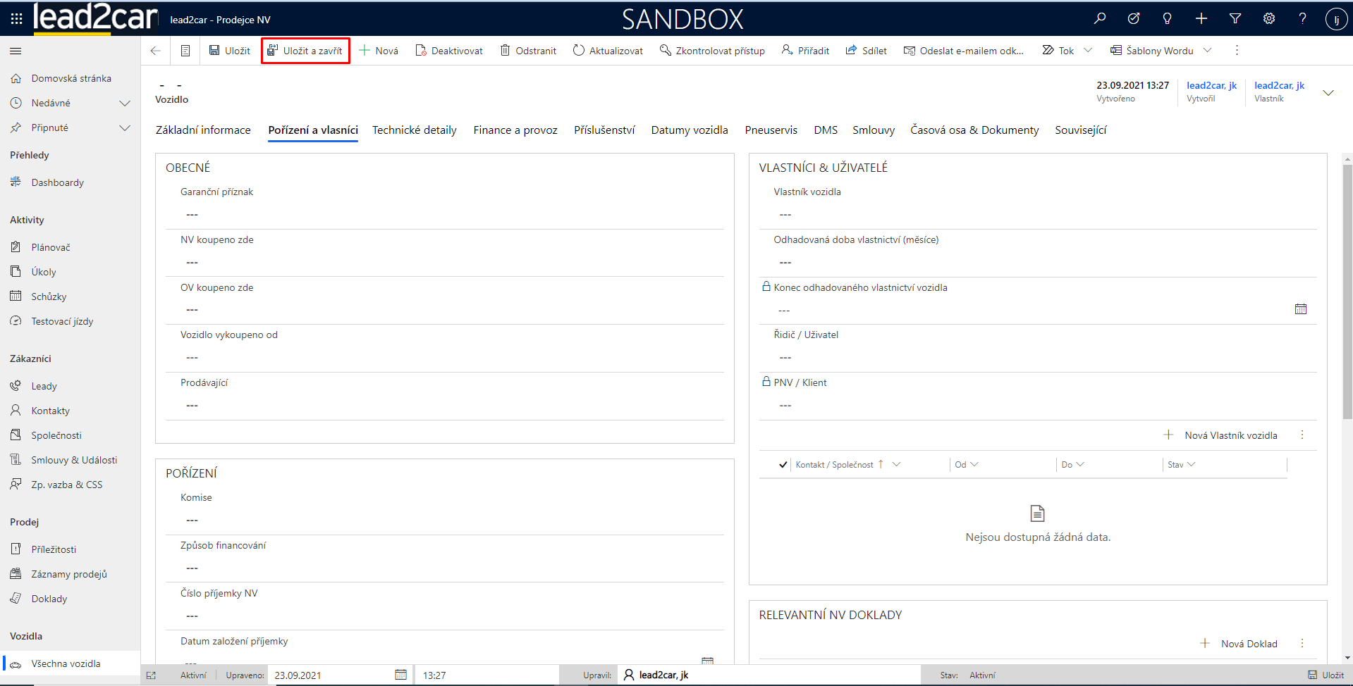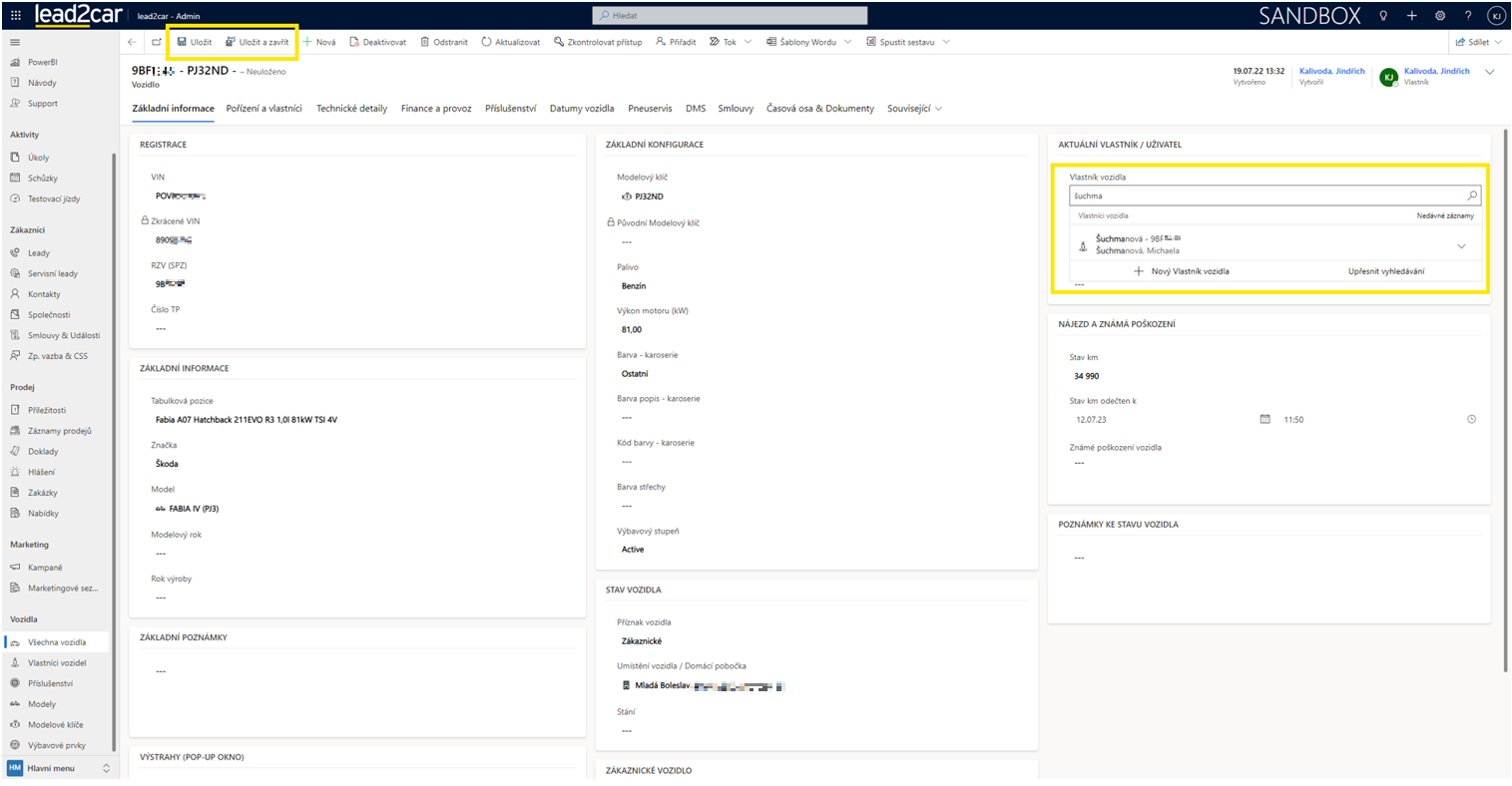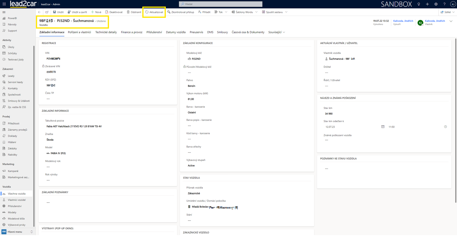 V případě, že si budete chtít zkontrolovat, že se vlastník vozidlu opravdu připsal, pak je lepší využít tlačítko Uložit a následně stisknout Aktualizovat v horní liště. Po aktualizaci formuláře by se měl nový vlastník propsat i do názvu vozidla.